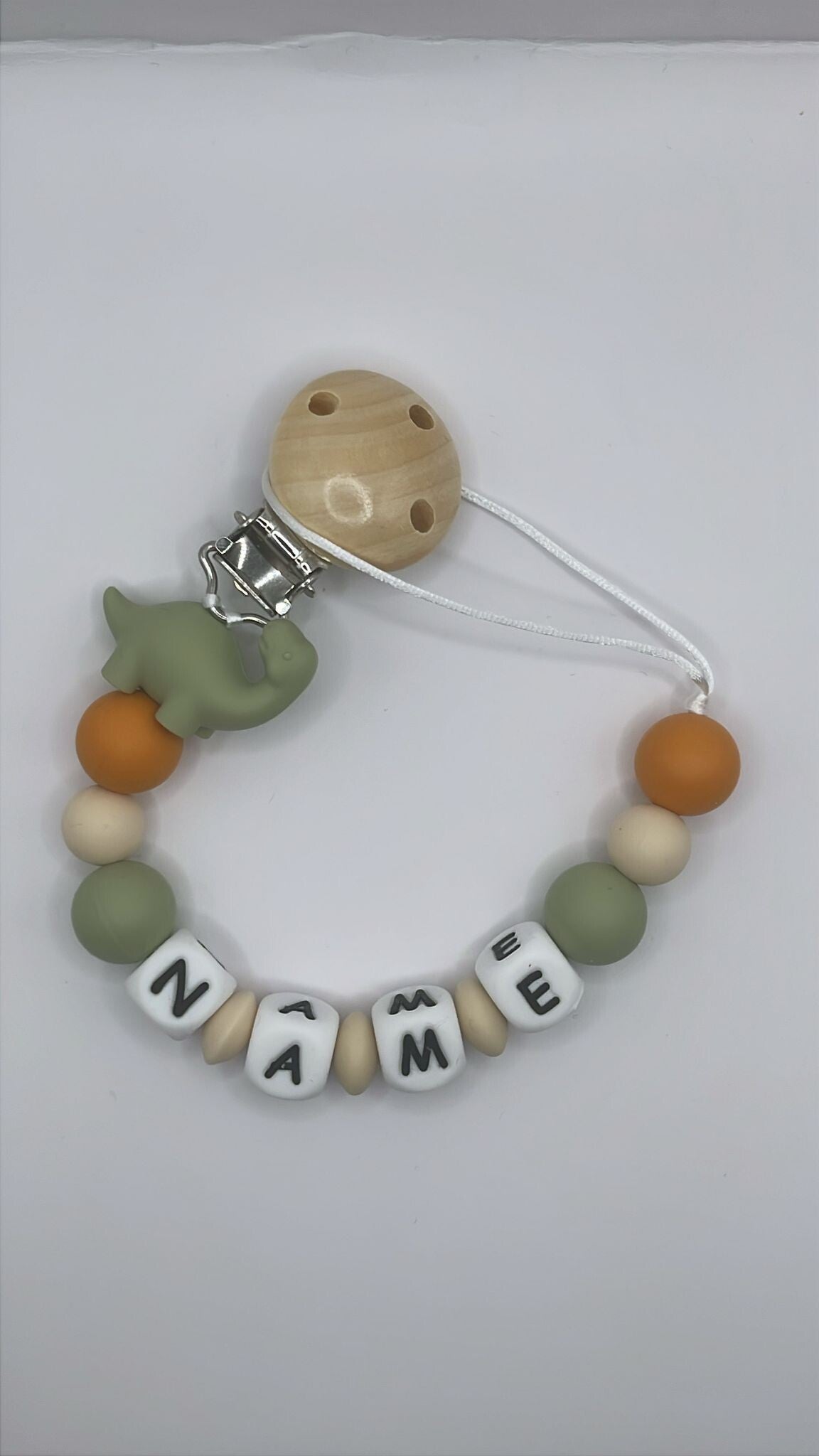 This dummy clip is made with wooden beads and chunky 10mm acrylic letters. Please leave your personalisation name in the box provided before checkout. We have a maximum of 8 letters as the letter beads are large. If your name is longer than 8 letters please send us a message before ordering and we will see if we can accommodate the name.
